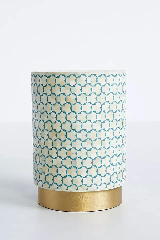Handcrafted Bone Inlay CentralDrum Table Decorative Round Accent Table with Intricate Inlay Work Perfect for Living Room Bedroom