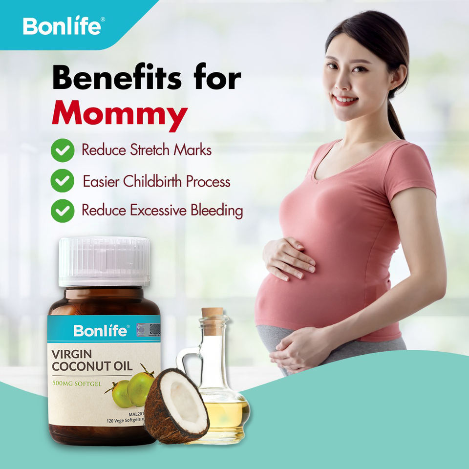 Bonlife Coconut Oil 500mg Natural Cold Pressed Softgels 120 Vegetarian Capsules for Metabolism & Skin Health