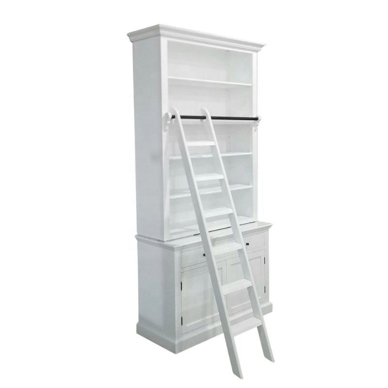 Bookcase with Ladder Solid Wood Library Bookcase Knock Down Showcase Cabinet Made for Modern Minimalist Home Office Furniture