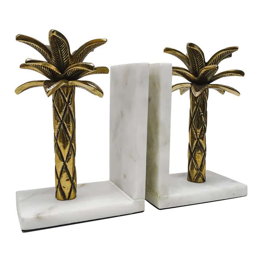 Bookend Handmade Aluminum metal Bookend With Marble Base Brass Antique Finished Palm tree Design Table Organizer