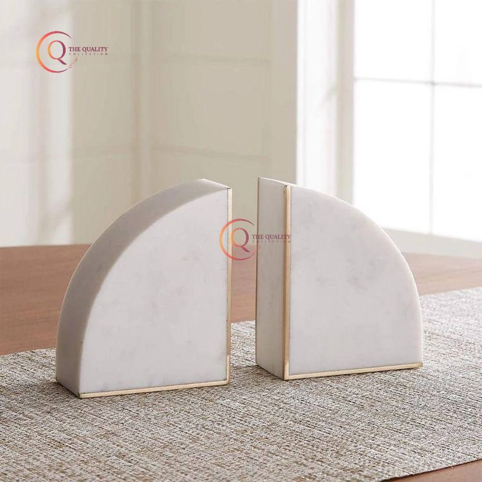 Bookend Home Tabletop Book Holder White Mosaic Marble Modern Bookends Attractive Look Pattern Decorative Study Room Bookends