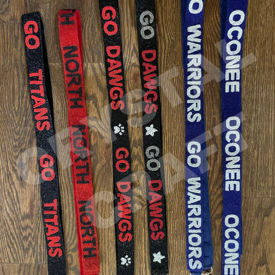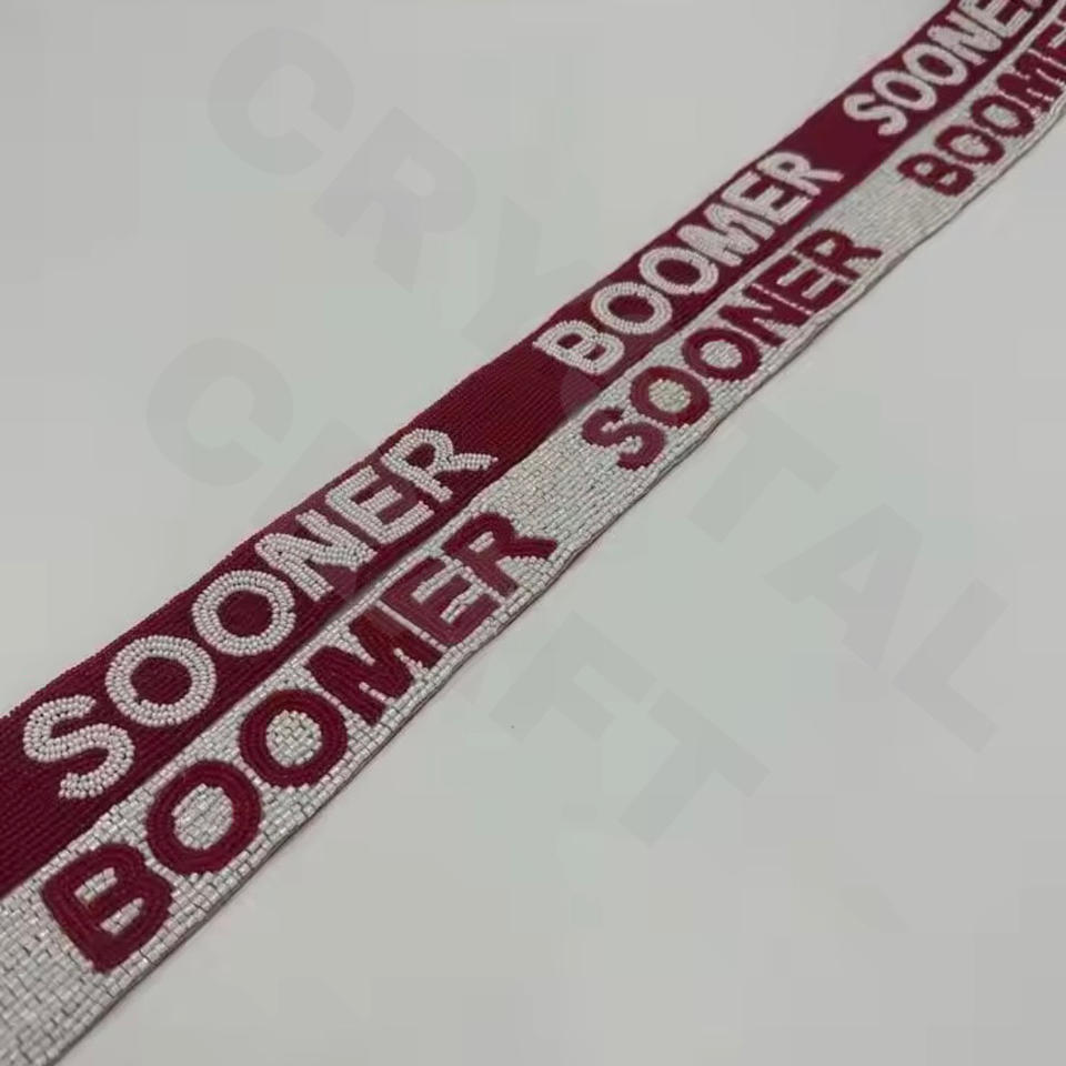 Boomer Sooner Customized White Gold Seed Bead Bag Straps 'Hook Em Horns' Fashionable Accessory Beaded Purse Strap