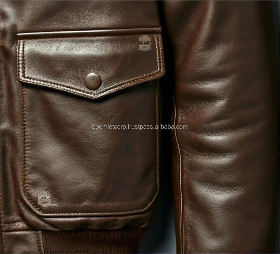 Boomletcorp Double Breasted Leather Bomber Jacket for Men-All Colors Available New Arrival Wind-Proof
