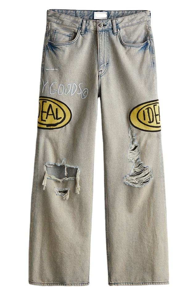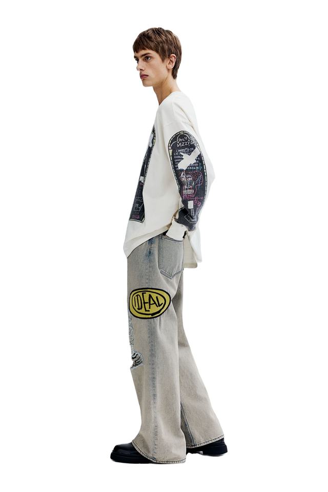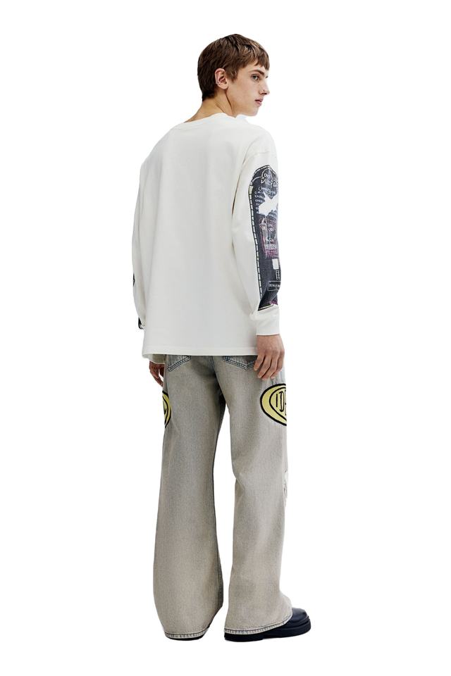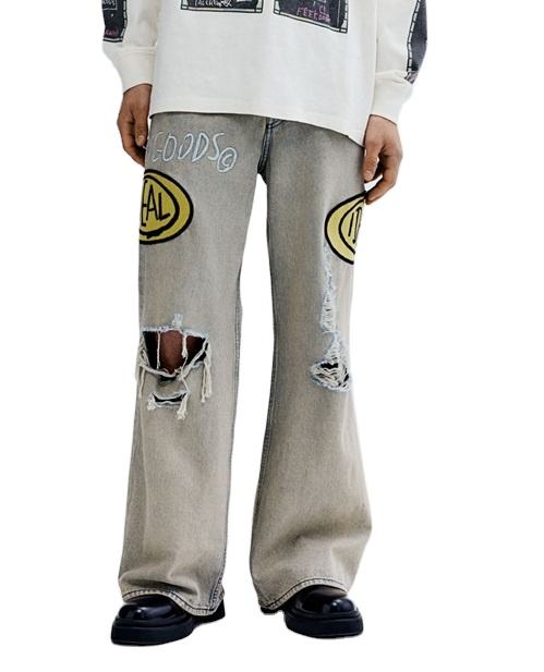 Boot Cut Loose Fit Top Selling New Bold Design 100% Cotton Stretchable Denim Grey Men's 5-Pocket Jeans With Basquiat Art Works