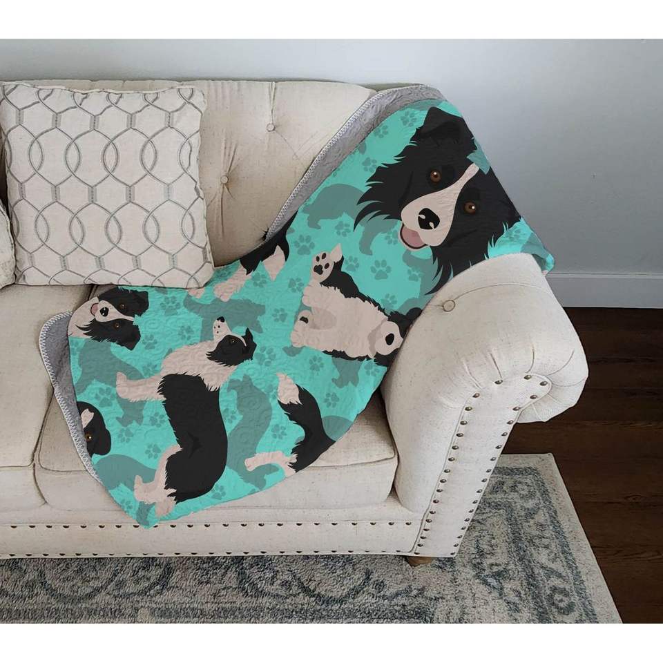 Border Collie Artwork Pattern Quilted Throw Blanket 50x60 Soft and Lightweight for Bed Couch Sofa for Pets