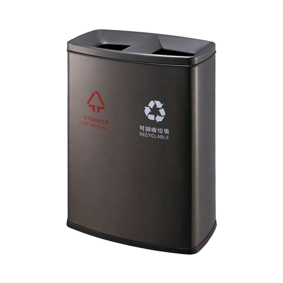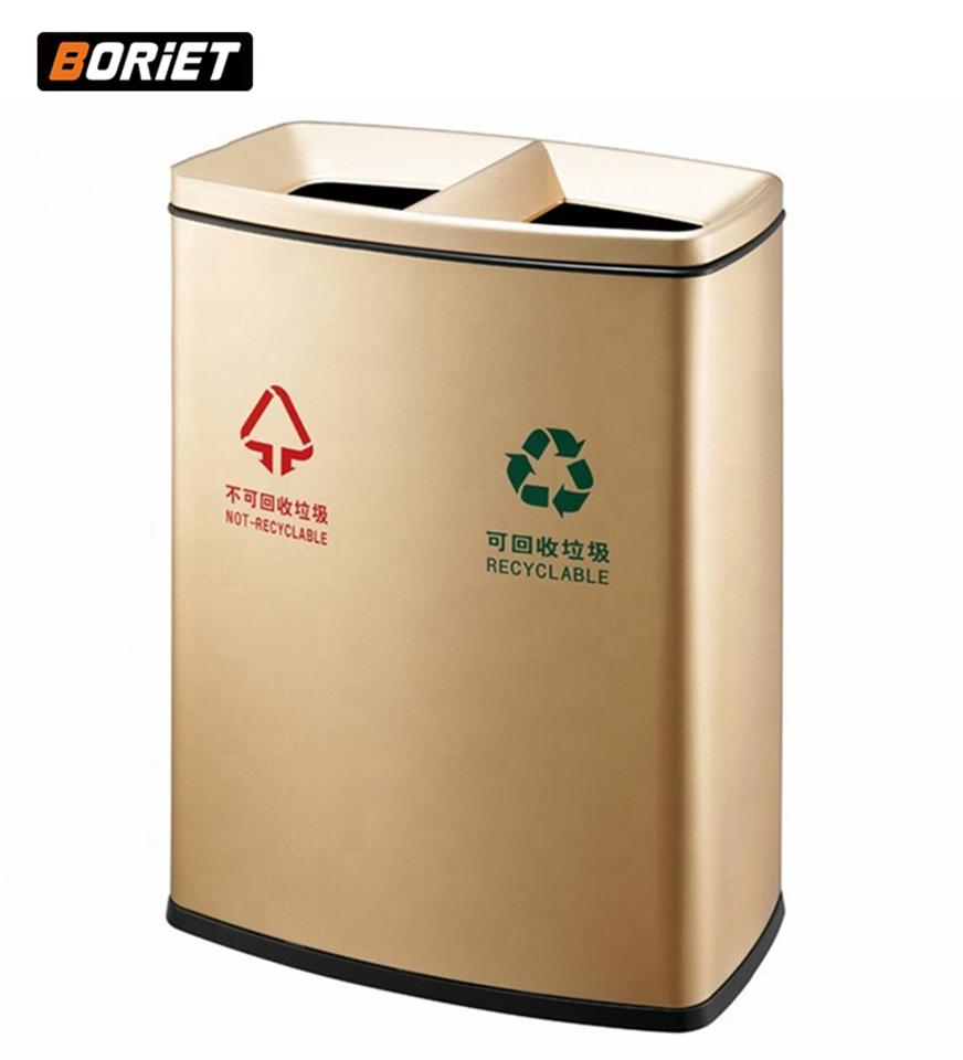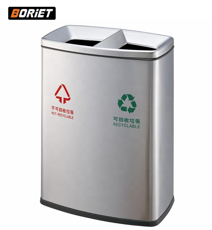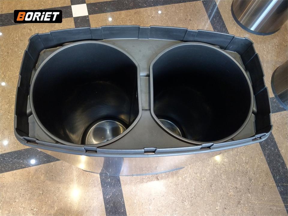 Boriet 30L Stainless Steel 2 Compartment Rolling Cover Type Lid Trash Can Space Saving Eco-Friendly ISO9001 Certified Waste Bin