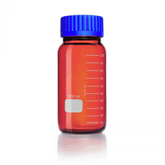 Borosilicate Glass Amber 500ml Wide Mouth Round Laboratory Bottle with Polypropylene Screw Cap and Blue Pouring Ring