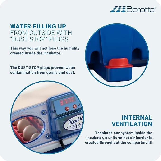 Borotto Medium-Sized 49 Eggs Incubator Thermostat Made in Italy Real 49 Plus Automatic Professional Egg Incubator 110-120V