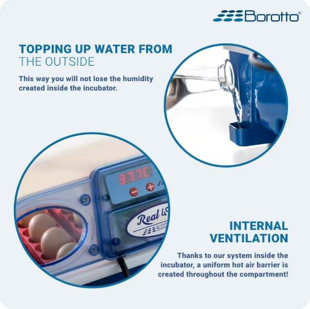 Borotto Real 49 Semi Automated Egg Incubator 49 Eggs 196 Quail Eggs Automatic Incubator Machine Made in Italy