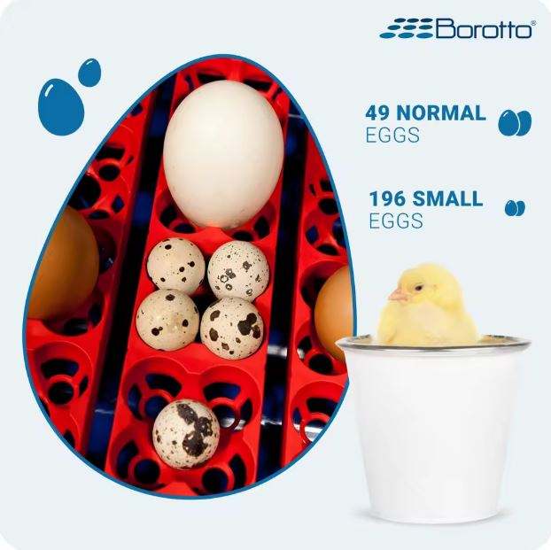 Borotto Real 49 Semi Automated Egg Incubator 49 Eggs 196 Quail Eggs Automatic Incubator Machine Made in Italy
