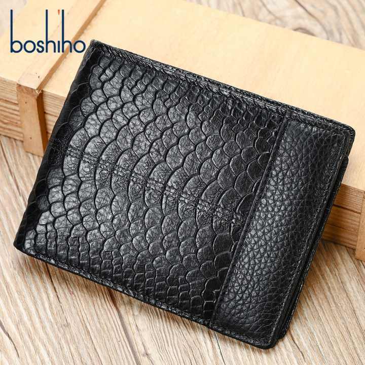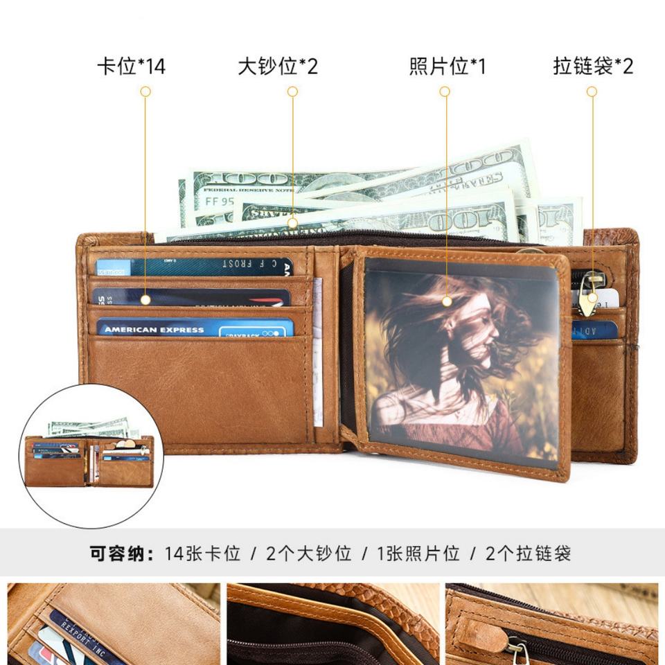 Boshiho Customized Embossed Bifold Short Wallet for Men Genuine Leather Zipper Coin Pocket Card Holder Credit Card Use Features