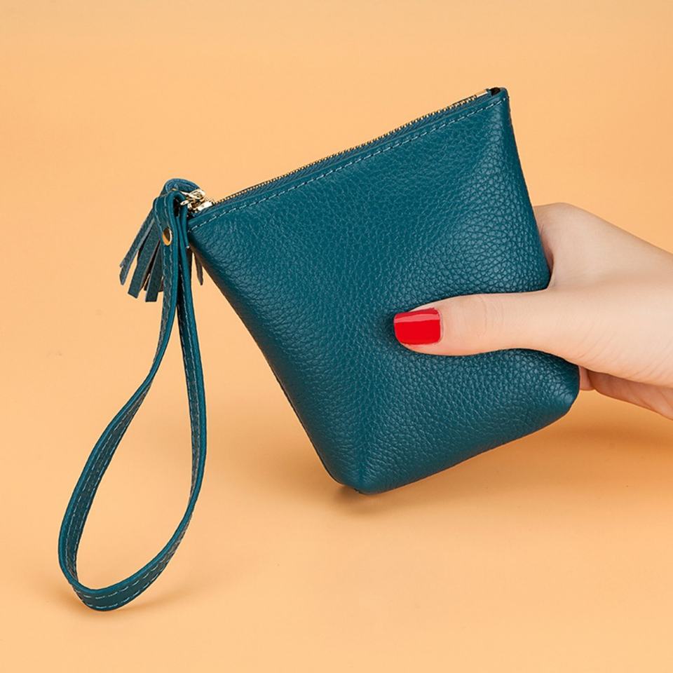 Boshiho Customized Genuine Lychee Pattern Leather Coin Pouch Slim Leather Coin Wallet Small Card Holder
