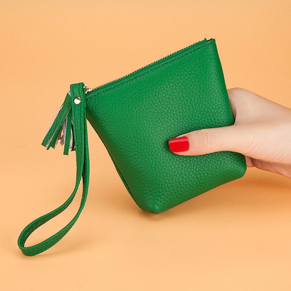 Boshiho Customized Genuine Lychee Pattern Leather Coin Pouch Slim Leather Coin Wallet Small Card Holder