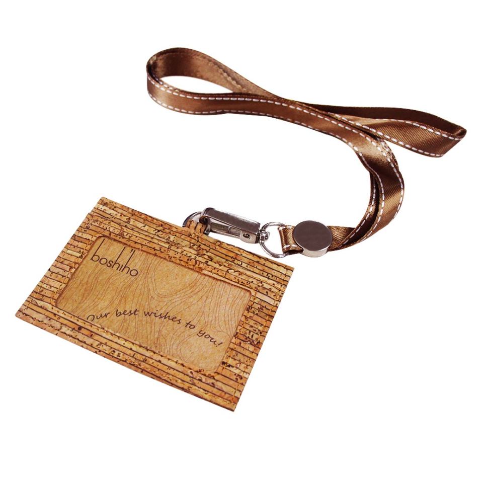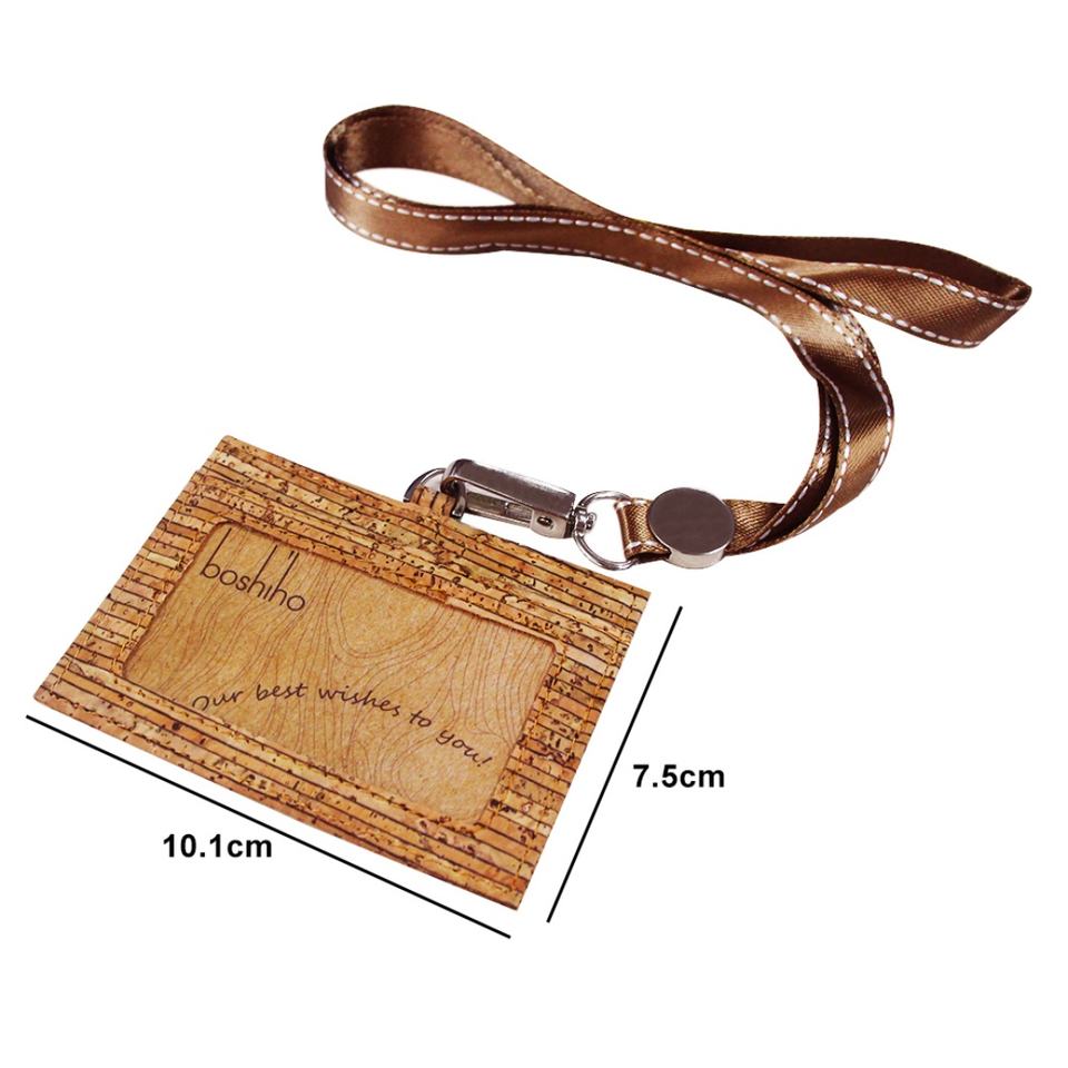 Boshiho RTS Vegan Cork Card Horizontal Id Badge Holder Friendly Retractable Security Badge Holder with Lanyard