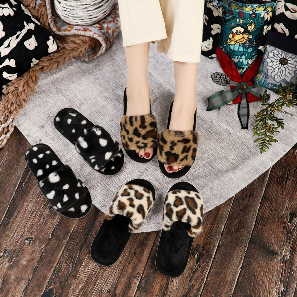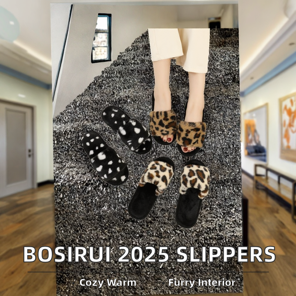 Bosirui 2025 Winter New Warm Fairy Style Leopard Print Plush for for Women Indoor Outdoor Use EVA PVC Insole