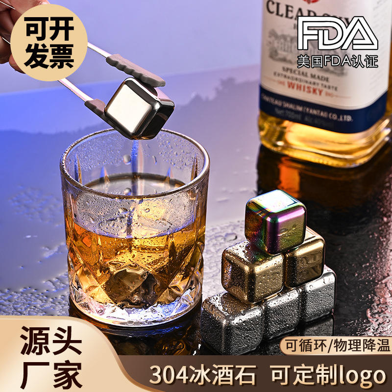 Bosuns Titanium Plated Stainless Steel Ice Stones 304 Square Food Grade For Whiskey Beer Party Chilling Set Of 6