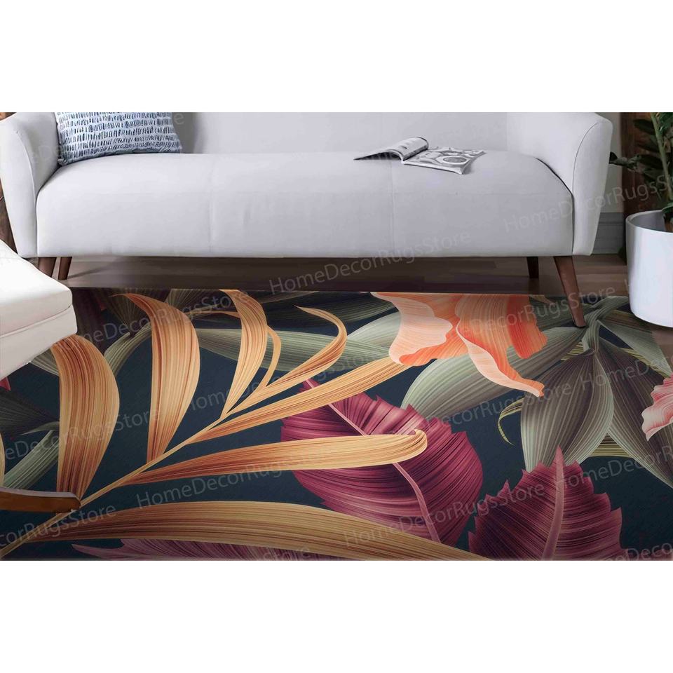 Botanical Printed Rug: Floral, Jungle Leaves, Colorful Leaves Design,Chenille Rug
