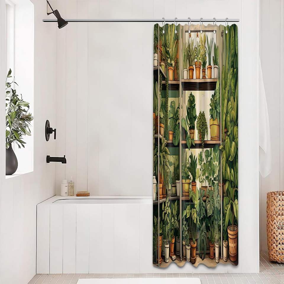 Botanical Vintage Green Plant Shower Curtain 3D Floral Bathroom Home Decor Nature Inspired Fake Potted Greenery Stock Included