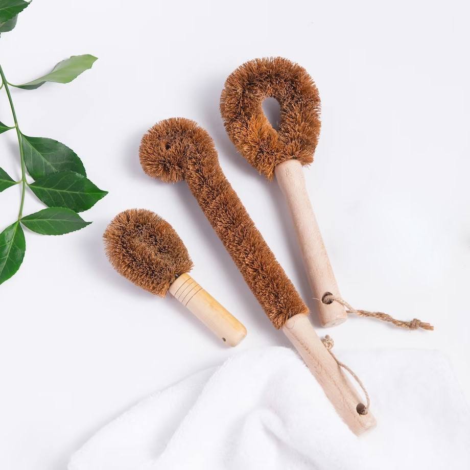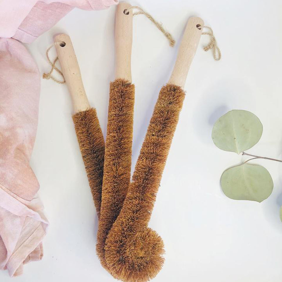 Bottle Cleaner Cup Cleaning Scrubber Eco Coconut Fiber Brushes for Sink Custom logo Bottles Brush With Wood Handle