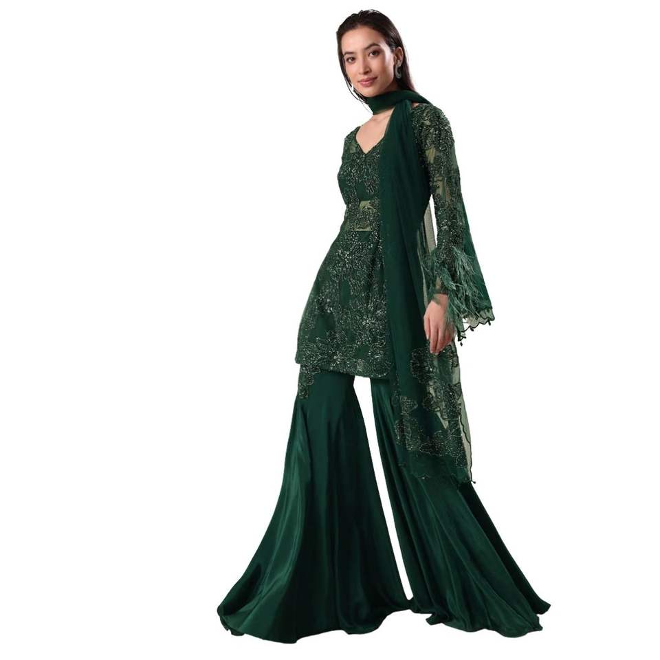Bottle Green Fancy Sequins Palazzo Suit Wholesale Women Ethnic Apparel OEM Clothing Factory Supplier Custom Party Wedding Outfit