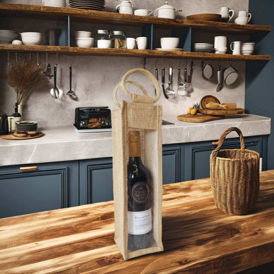 Bottle holder bag made of jute with custom design & size bags for gifting & packing