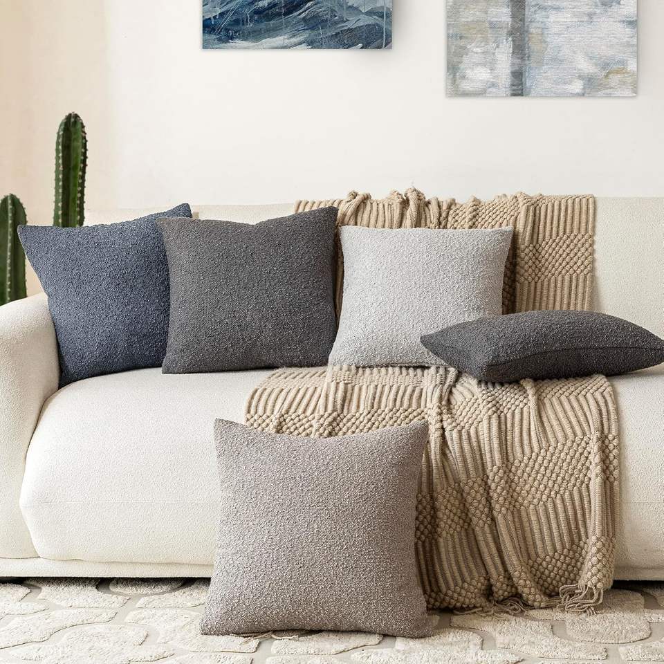Boucle Pillow for Sofa Accent Solid Pillow Cases Couch Cushion Case for Chair Sofa Bedroom Living Room Home Decor No Latex