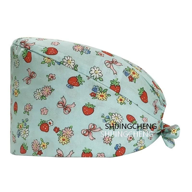 Bouffant Scrub Caps Cotton Nurse Scrub Hats with Button Sweatband Adjustable Surgical Caps for Nursing Cooking