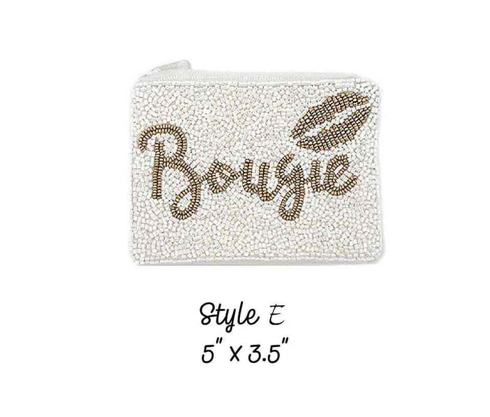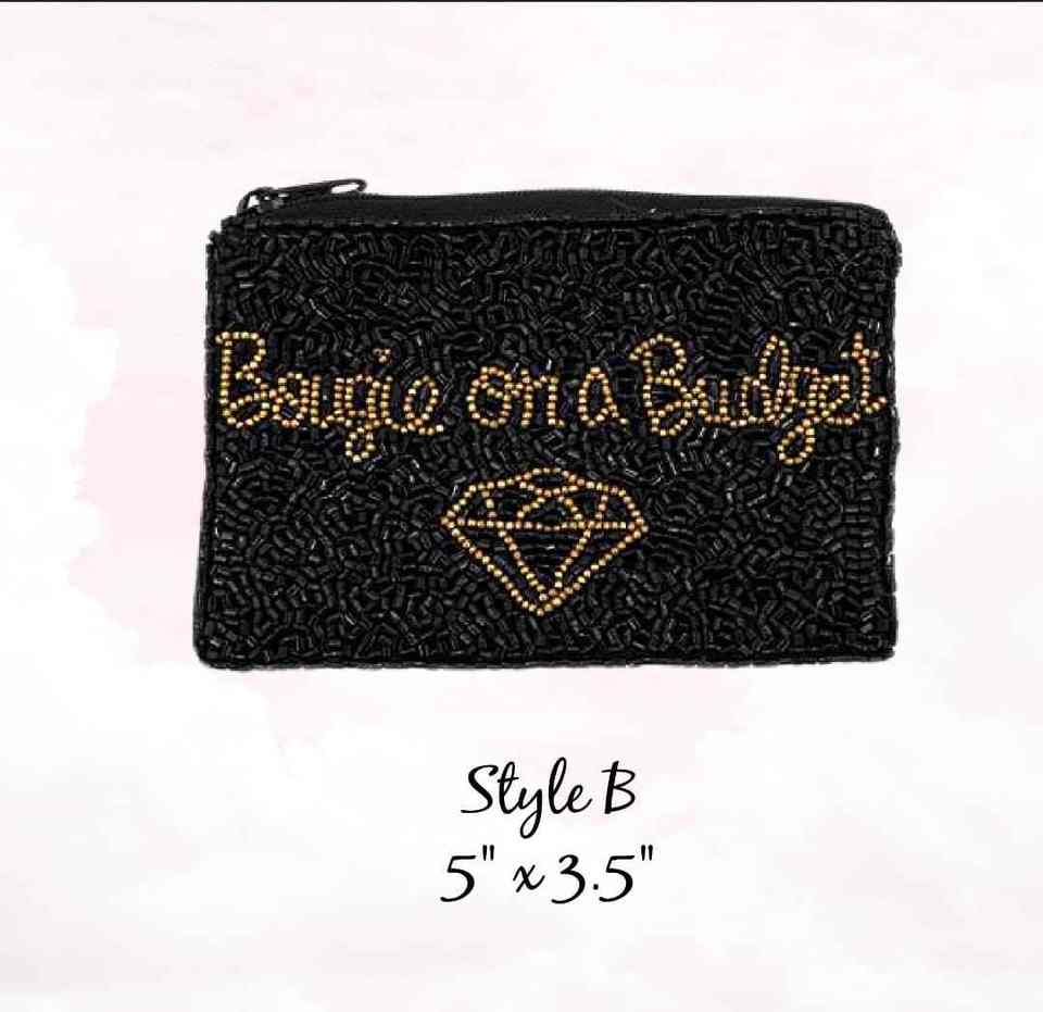 Bouige Pink Black Gold Seed Beaded Coin Pouch Purse Bag design ideal for mini accessories at bridal showers or festive events