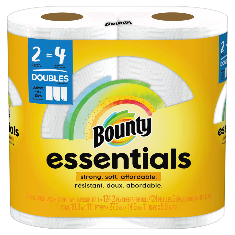 Bounty Essentials Select-A-Size White 3-Ply Paper Towels 2 Double Rolls Soft & Absorbent Kitchen Roll for Home Use