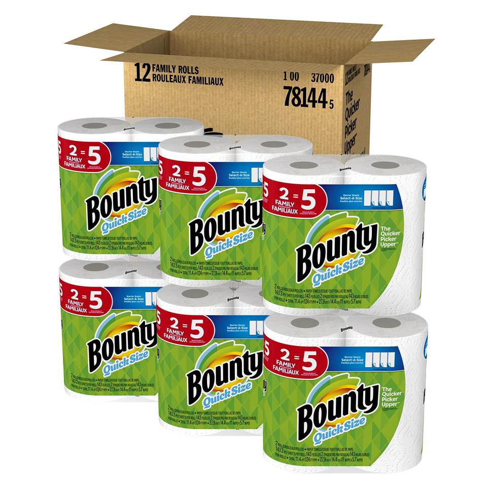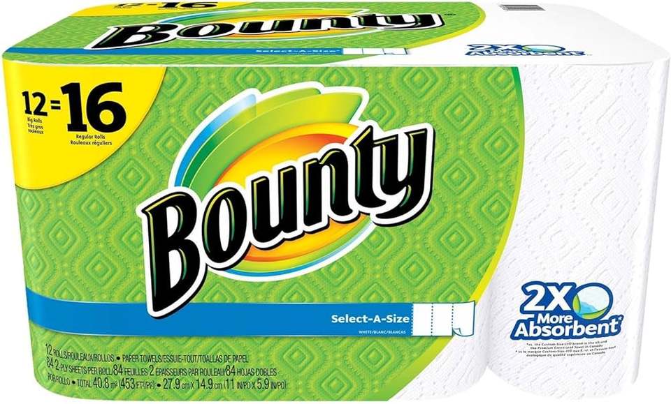Bounty Full Sheet Paper Towels, White, 2 Triple Rolls - 6 Regular Rolls (Pack of 2)