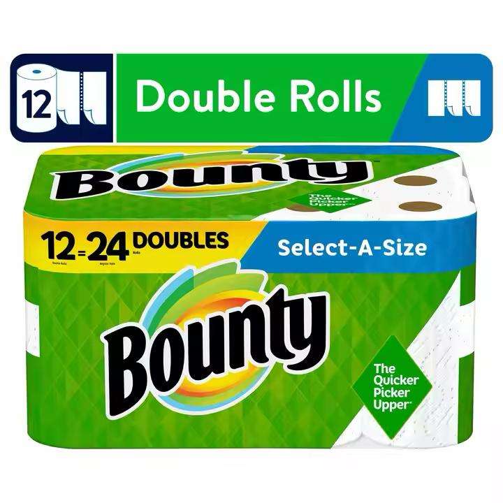Bounty Quick-Size Paper Towels White Mix Wood Pulp 12 Family Triple Rolls = 36 Regular Rolls Made in Germany