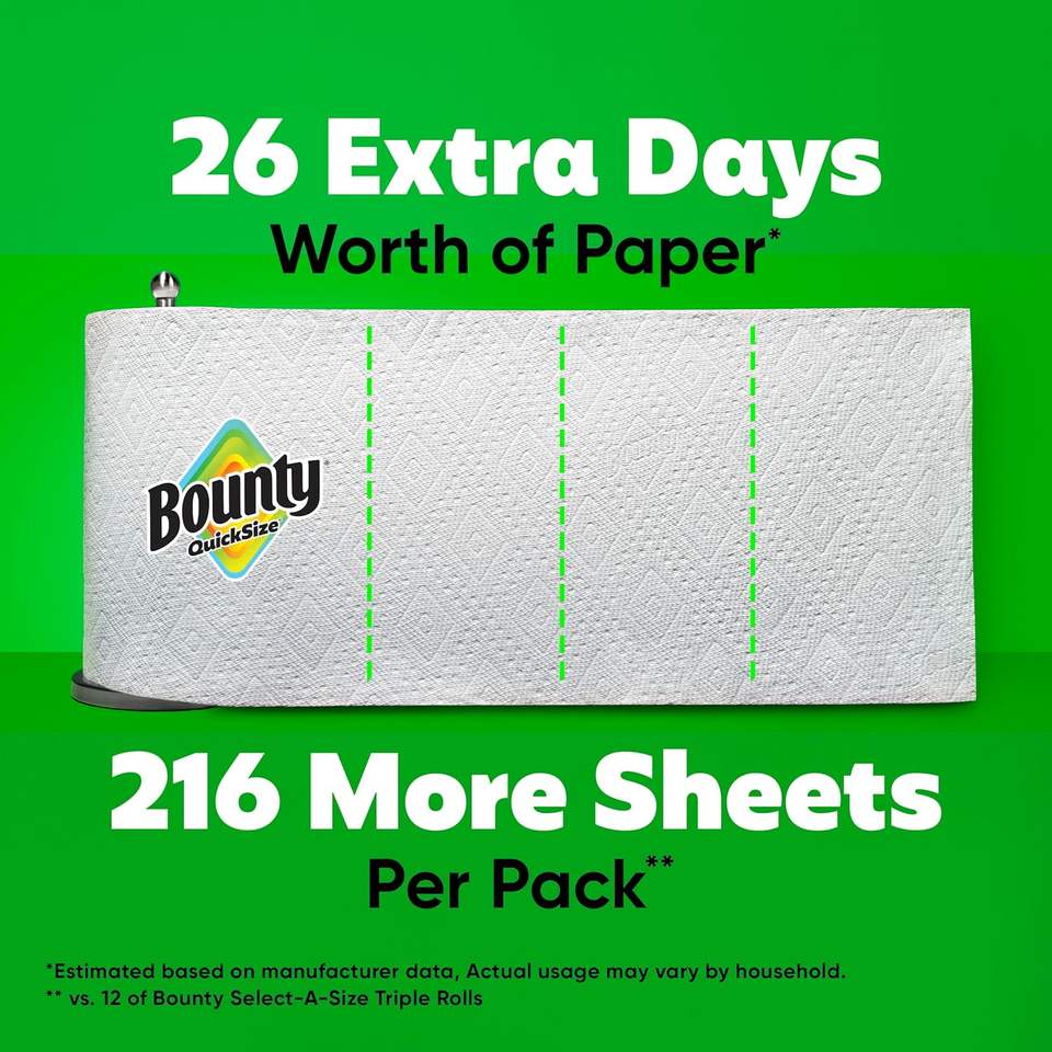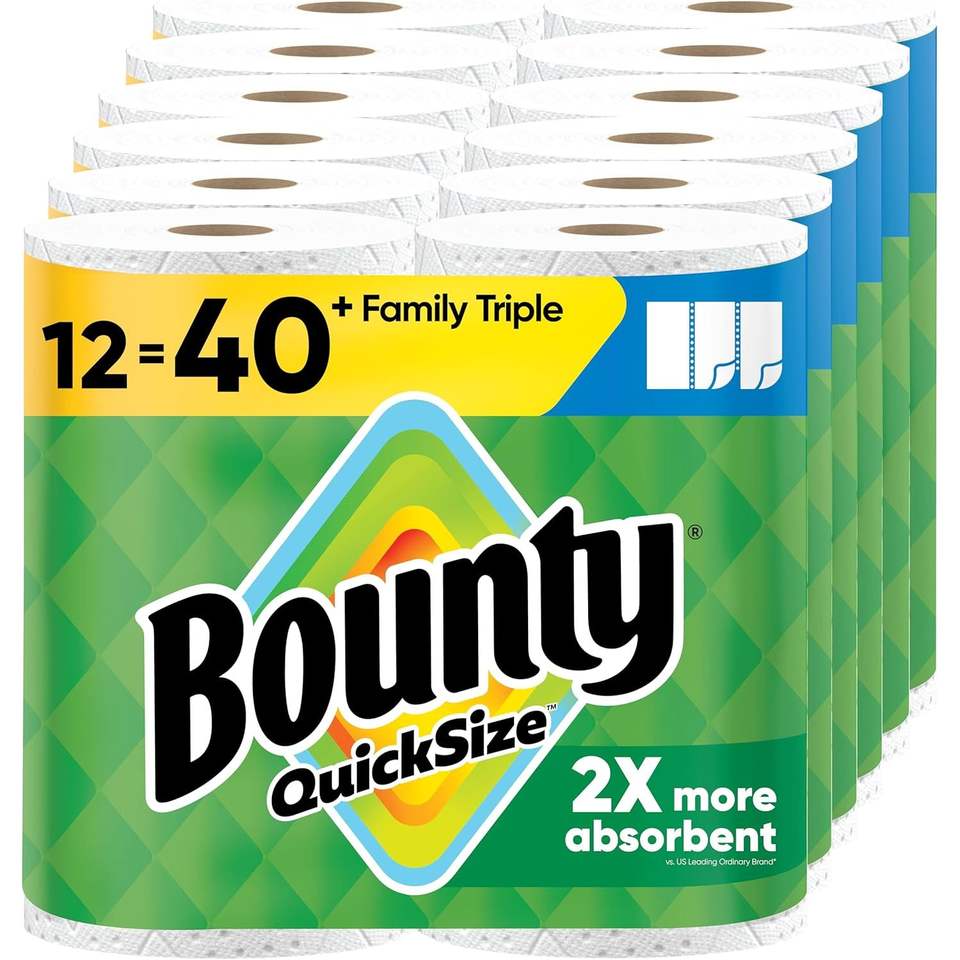 Bounty Quick-Size White Paper Towels 12 Triple Rolls = 40 Regular Rolls for Pet Waste Disposal in Families