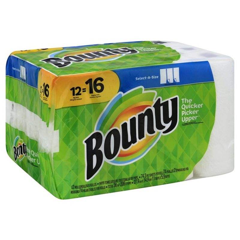 Bounty Quick-Size White Paper Towels 12 Triple Rolls = 16 Regular Rolls