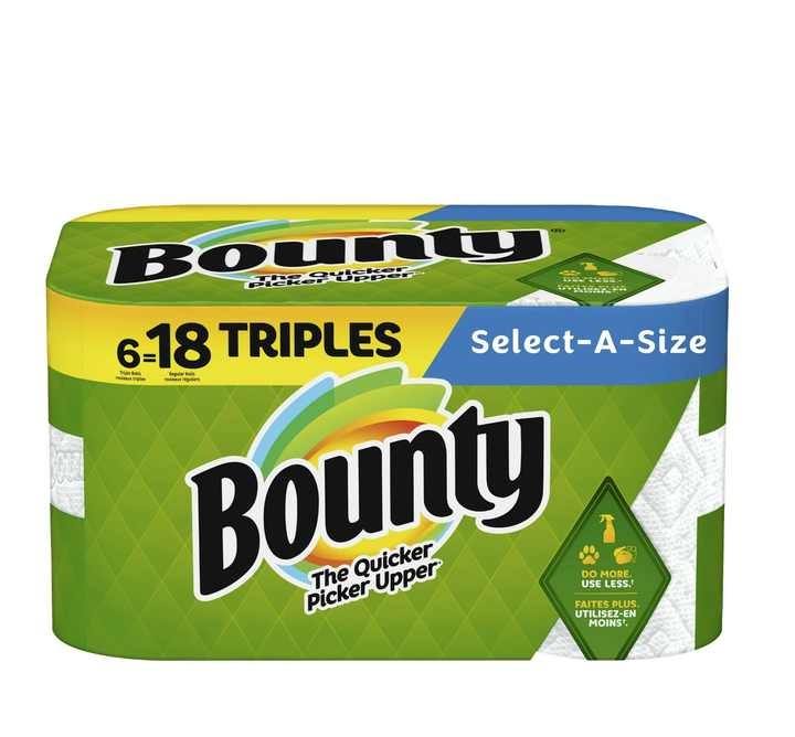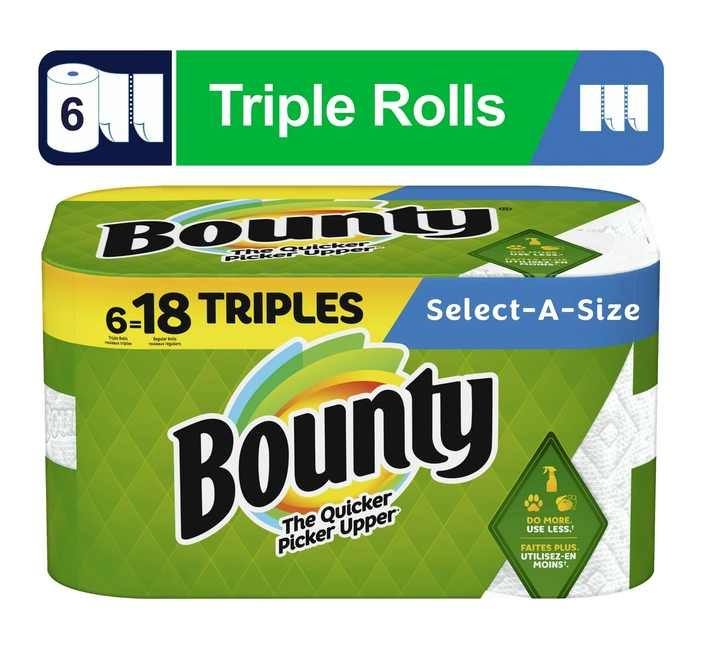 Bounty Select-A-Size Paper Towels, Triple Rolls, White, 135 Sheets Per Roll, 6 Count