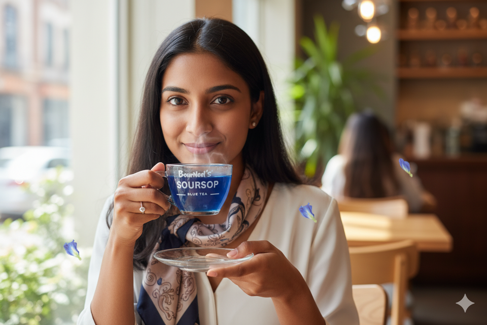 BourNeels Graviola Blue Tea Box 20 Bags Dipping Tea Bags No Preservatives High Vitamin C Soursop Blue Kadha Tea