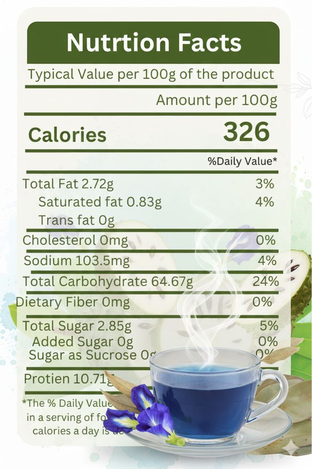 Dry soursop leaves & Dry Butterfly Pea FlowersIngredients