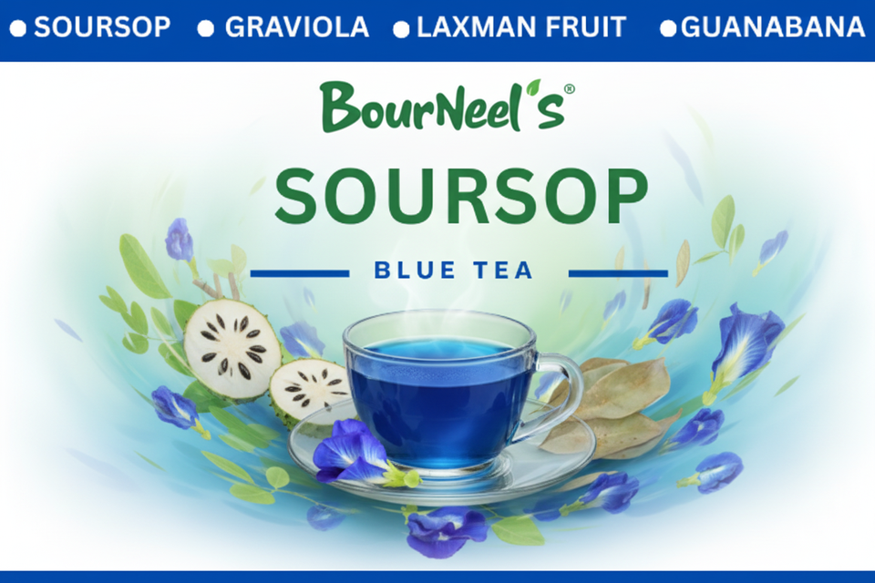BourNeels Graviola Blue Tea Box 20 Bags Dipping Tea Bags No Preservatives High Vitamin C Soursop Blue Kadha Tea