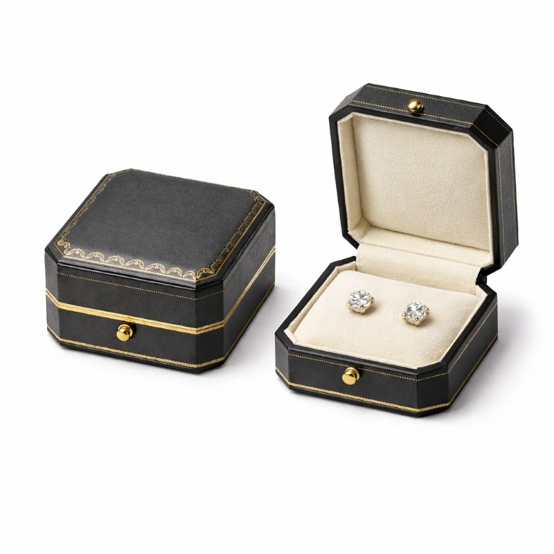Boutique Earring Box Hinged Faux Leather Jewelry Gift Box Velvet Insert Custom Logo for Jewelry Brand Positioning Packaging OEM