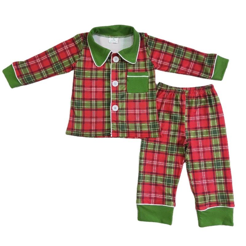 Boutique Red Green plaid Fall Outfits for Little Boys Wholesale Toddler Boy Long Sleeve Pajamas Set