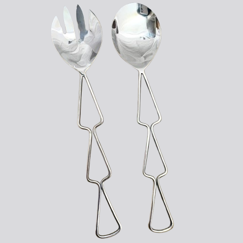 Boutique Style Silver Stainless Steel Salad Server Set for Hotels, Modern Designer Metal Serving Utensils for Home Brands