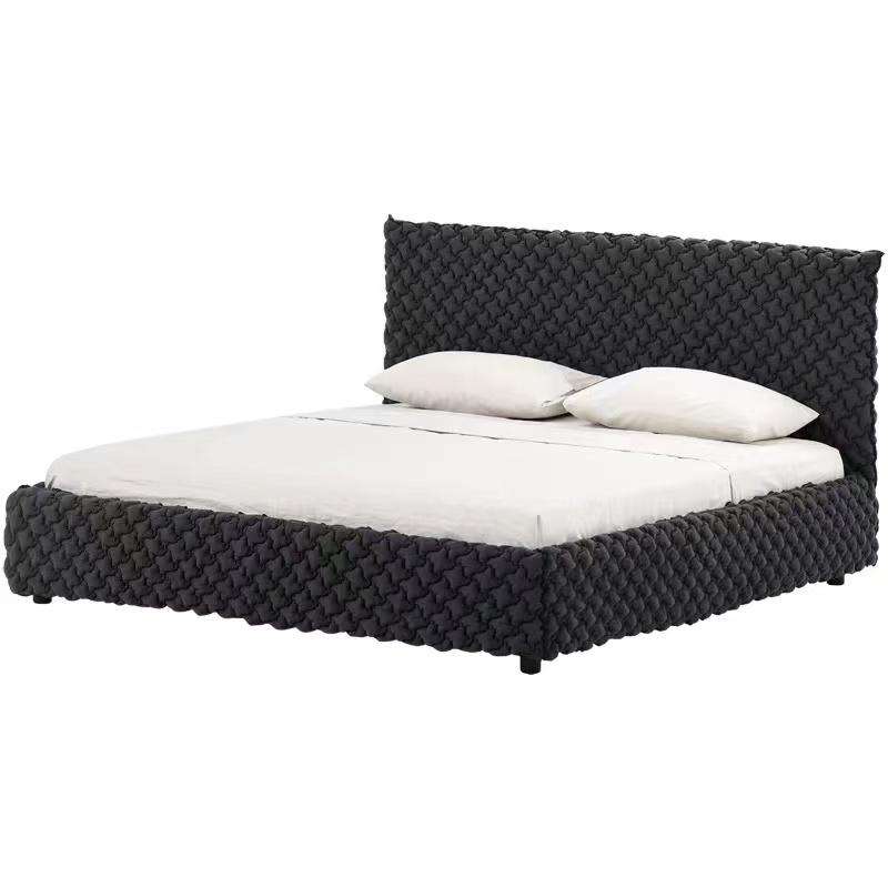 Modern Boutique Villa Bed Centerpiece with Dual-Fabric Upholstery & Reclining Massage Feature