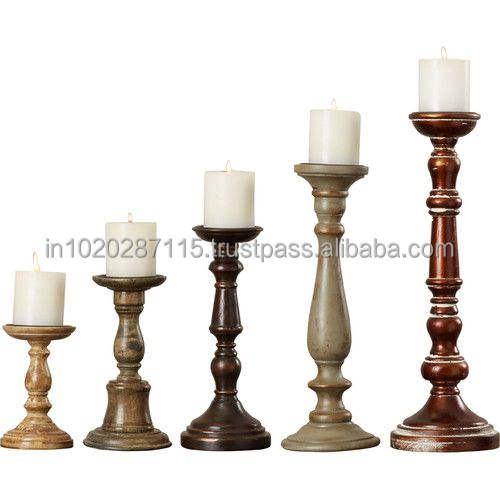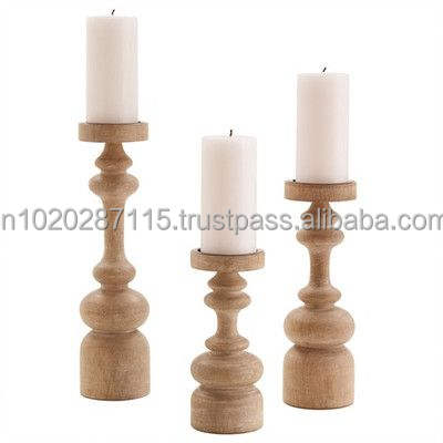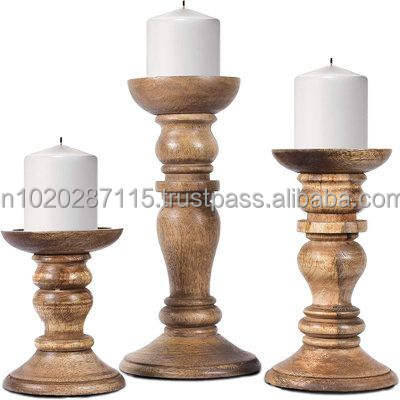Boutique wooden candle holder designed for luxury home decoration offering heavy rich natural wood detailing
