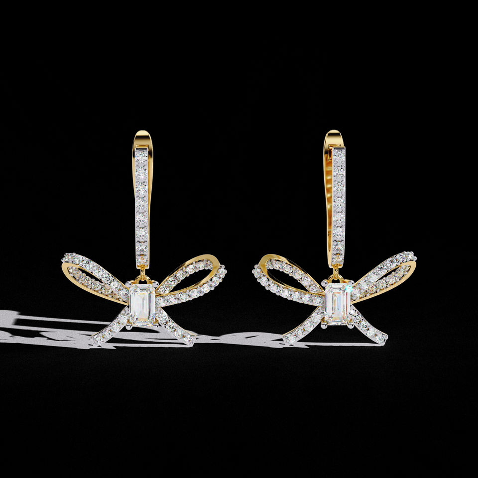Bow Design Dangling Earrings DEF Color VS Clarity 14K White Gold Lab Diamond Bow Earrings Stud Earrings
