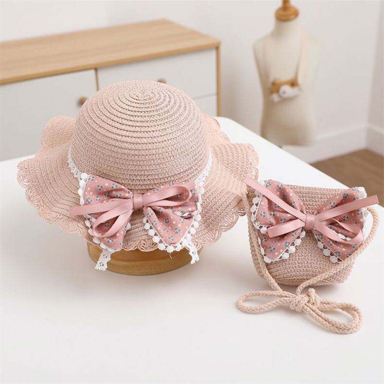 Bow Straw Hat Bag Set Summer Sun Shade Sunscreen Hat Super Cute Kids Straw Hat