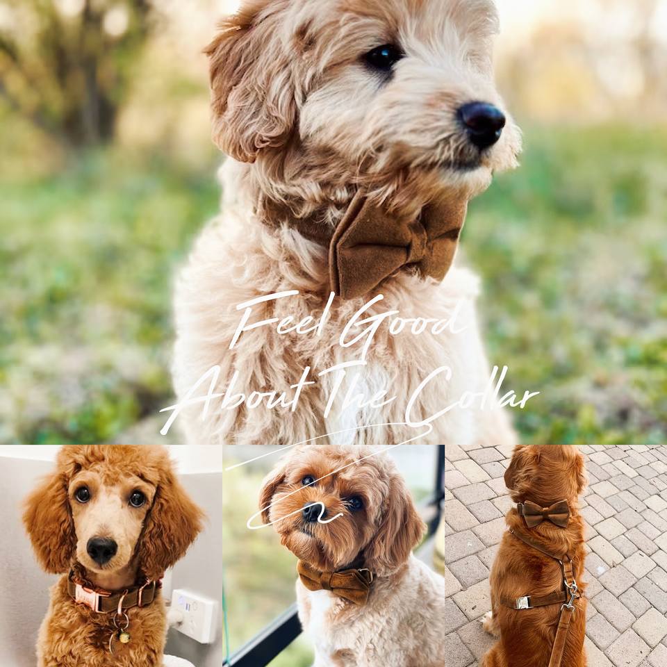 Bow Tie Lead,Chocolate Veet Boy Dog With Engraved Name Metal Buckle,Puppy Collar And Lead