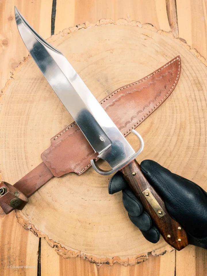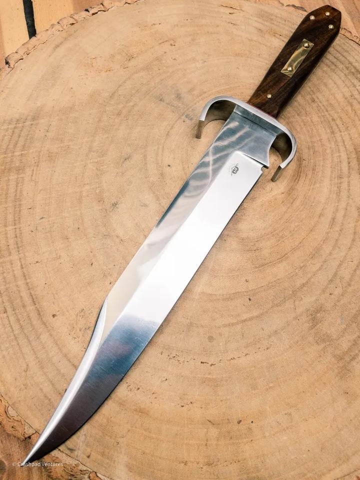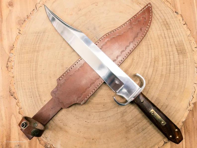 Bowie Knife 'The Main Event' Stainless Steel Back-End Rosewood Brass Plate Fixed Blade for DIY Movies Hunting OEM Customizable