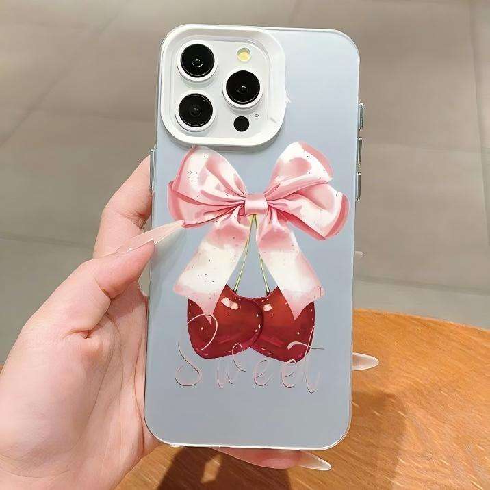Bowknot Cherry Suitable for iPhone 16 Matte Phone Case for Apple 17 Pro Max Creative 15/14 Drop-Proof 13