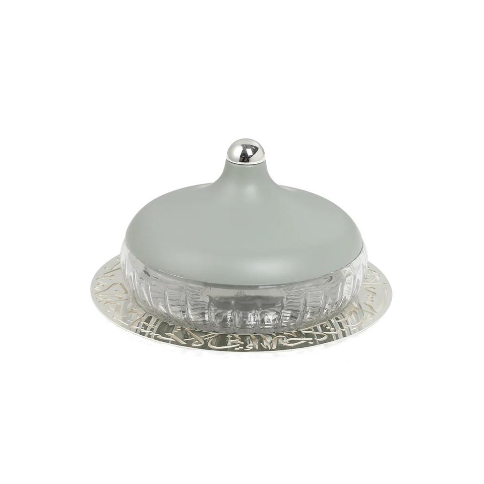 Bowl Engraved Date And Dessert Centerpiece With Glass Bowl And Stainless Steel Base And Lid Arabic Serving Dish