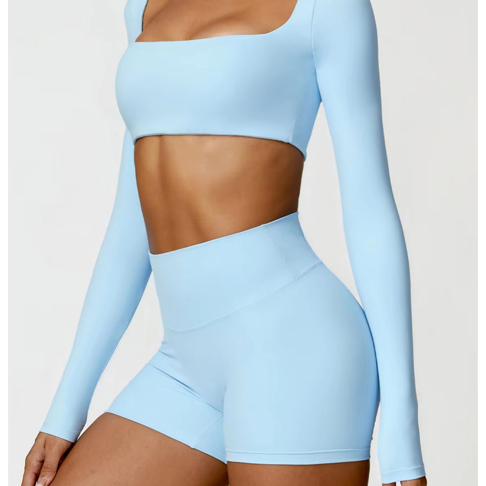 Box neck Quick Dry Yoga Set Tight Fitness Casual Running Exercise Bra Shorts Set Short Sleeves and Pants Sport Sets