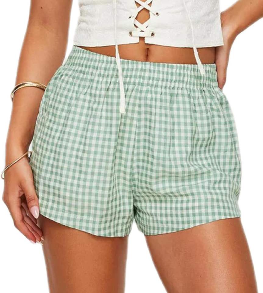 Boxer Shorts Women Y2k Pajamas Shorts Gingham Cute Pj Short Pants Plaid Lounge Shorts Sleep Bottoms Elastic Boxers Streetwear